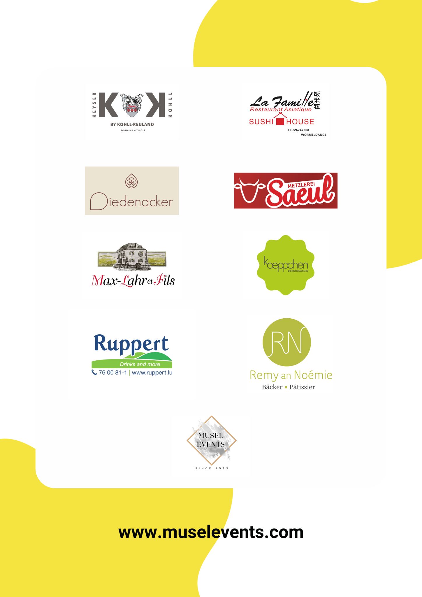 Entstan ass MuselEvents 2023, wei e Grupp vu Kolleegen d'Iddi hat, mol erëm bësse Liewen an d'Musel Regioun ze bréngen. Schonn am éischte Joer goufen e Beerpongtournoi, e Quizowend an net ze läscht och eist Haaptevenement, de Winter Clubbing, zu Wuermer mat groussem Erfolleg duerchgefouert. An den nächste Jore wäerten do nach vill spannend Eventer mat flotte Momenter derbäi kommen.